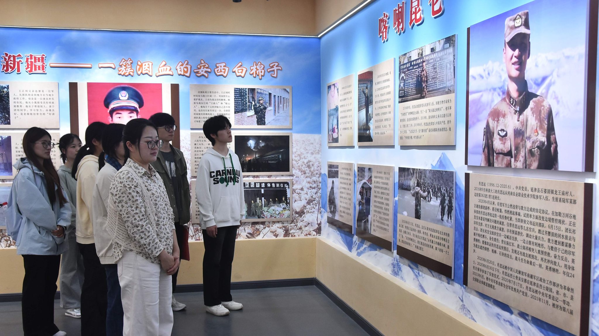 数学243班闫一帆表示,肖思远烈士在加勒万河谷用生命践行使命的英雄壮举令人动容,号召全体同学以英雄为榜样,将对英雄的缅怀转化为报效祖国、服务社会的强大动力,勇担时代使命,不负青春韶华。