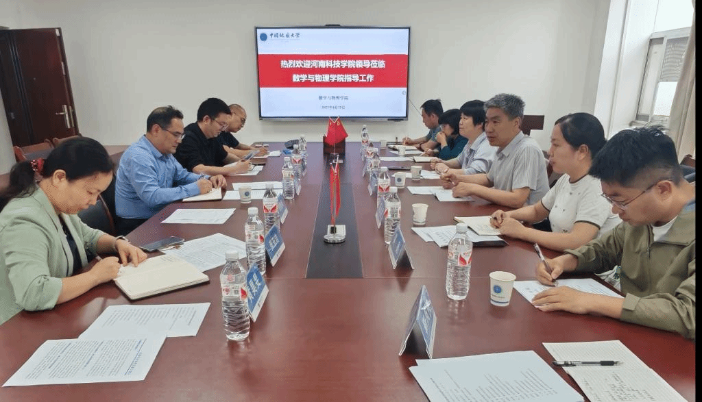 张基得对我院来访表示欢迎,简要介绍了中国地质大学及数学与物理学院的发展概况。随后,张基得及班子成员分享了学院在专业建设、学科发展、团队建设、人才引进、学生培养、公共课教学、党建工作和社会服务等方面的经验与成果。