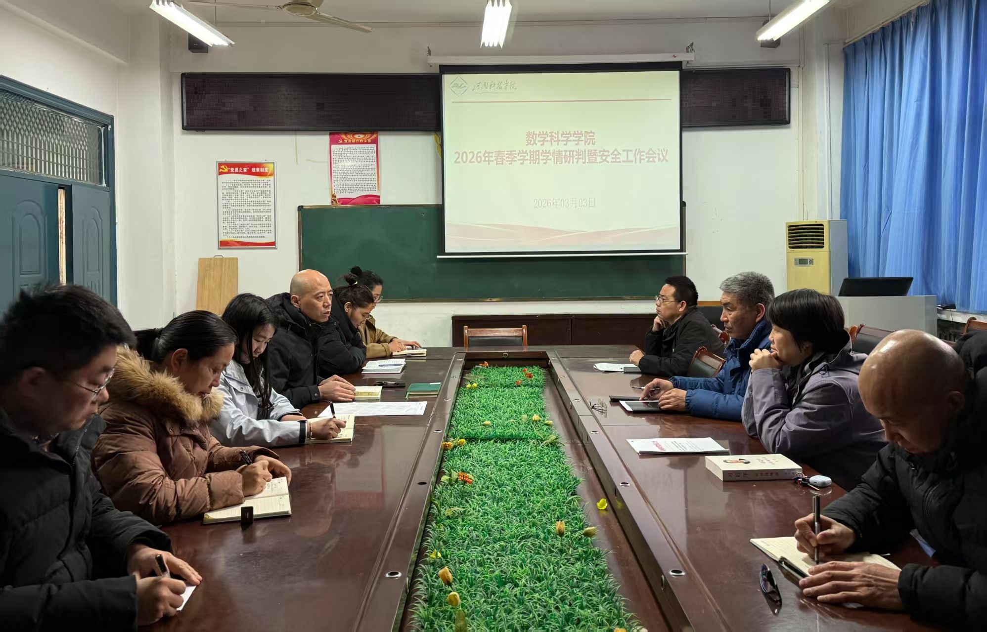 3月3日,数学科学学院于八号楼三楼303会议室召开2026年春季学期学情研判暨安全工作会议,学院领导班子、各教研室主任及全体辅导员参会,会议由党委副书记马宝林主持。
